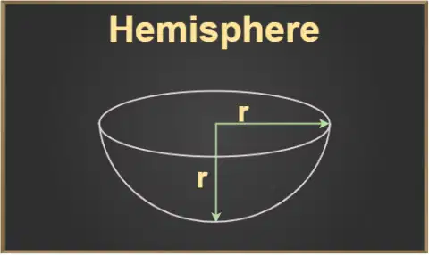 A hemisphere is a 3D (three-dimensional) shape that is half of a sphere. It has a curved surface and one flat circular base. The volume of hemisphere is the total number of unit cubes that can fit into it. The unit of volume is cubic units, therefore, the volume of hemisphere can be expressed as m3, cm3, in3, etc.