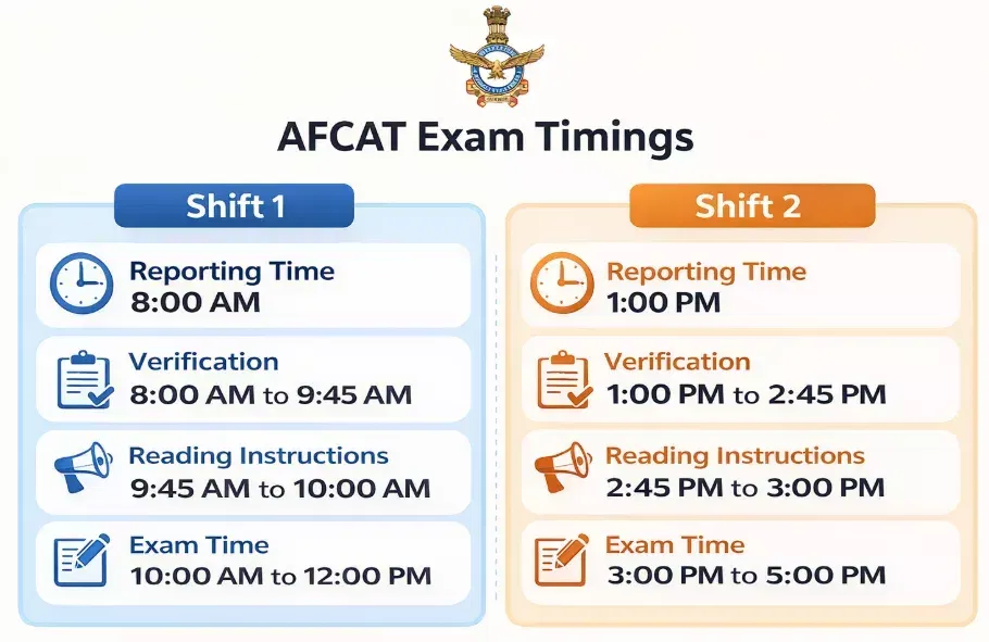 AFCAT 2026 Exam Shift and Timings
