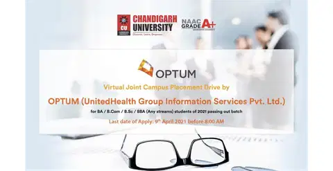 Accredited as the 'University with Best Placements' by WCRC and Limca Book Record Holder for bringing the highest number of companies to the campus for placements, Chandigarh University is undertaking another student placement initiative by hosting the Virtual Joint Campus Placement Drive by OPTUM (UnitedHealth Group Information Services Pvt. Ltd.). The joint placement drive is open for students from any stream, including BA, B.Com, B.Sc., BBA, and others, who wish to work at one of the leading Health Services and Innovation Company.