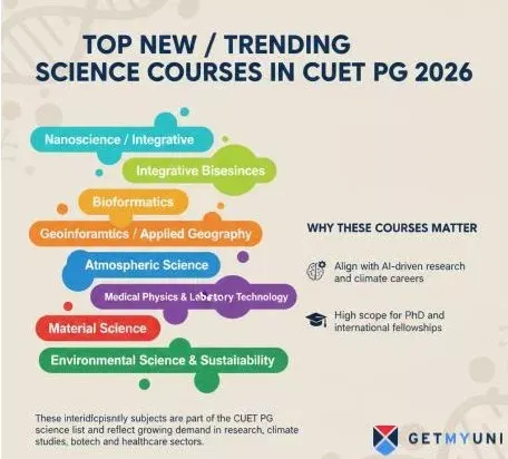 CUET PG 2026 marks a clear expansion in interdisciplinary science education, with emerging domains such as Nanoscience, Geoinformatics, Atmospheric Science, and sustainability-focused Environmental Studies now included among the CUET PG 2026 courses. These additions reflect the growing demand for research-oriented and industry-aligned postgraduate programmes across central and state universities.