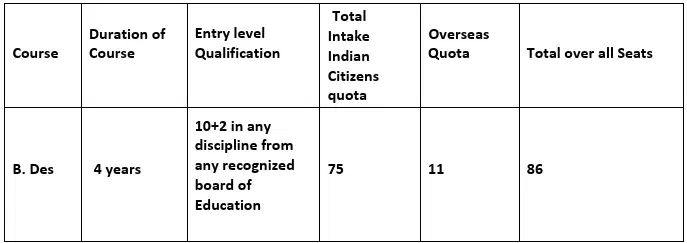 NID Haryana B.Des Seat Intake & Reservation Details
