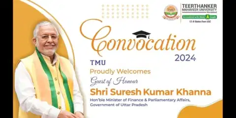 Teerthanker Mahaveer University (TMU), Moradabad, celebrated its Convocation 2024 with grandeur and pride, marking a significant milestone for its 2,500 graduates of the 2022–23 academic session. The event honored 51 gold medallists, 50 silver medallists, 51 bronze medallists, and 19 scholars who were awarded PhD degrees, celebrating their exceptional accomplishments.