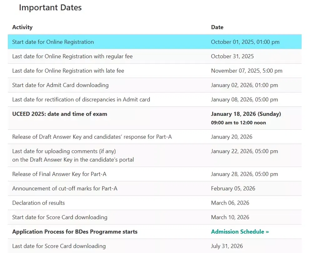 UCEED Exam 2026 Registration Dates