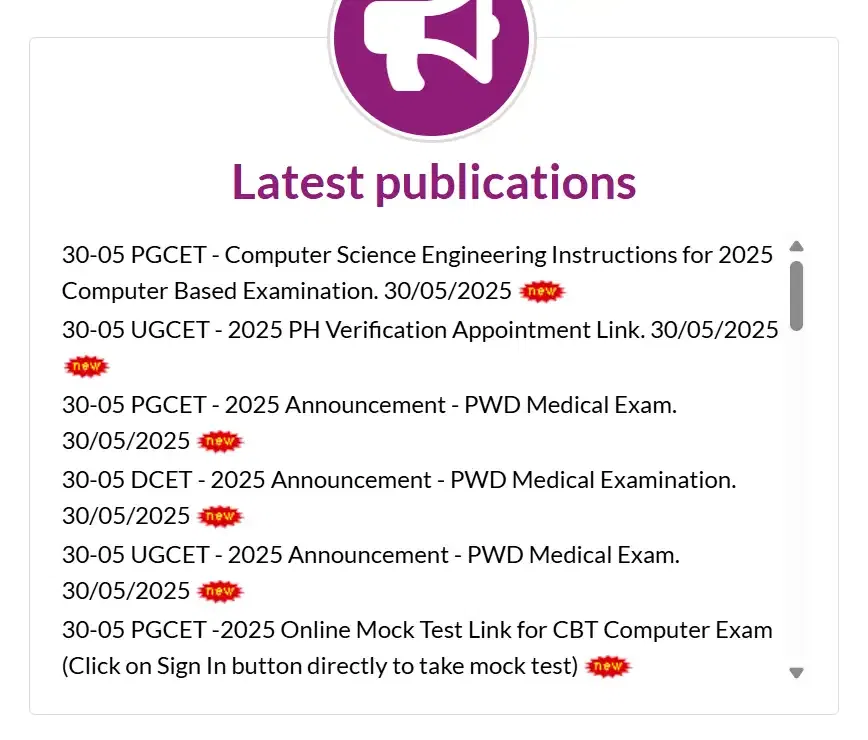 - Step 1: Candidates must visit the official website of Karnataka PGCET at cetonline.karnataka.gov.in.